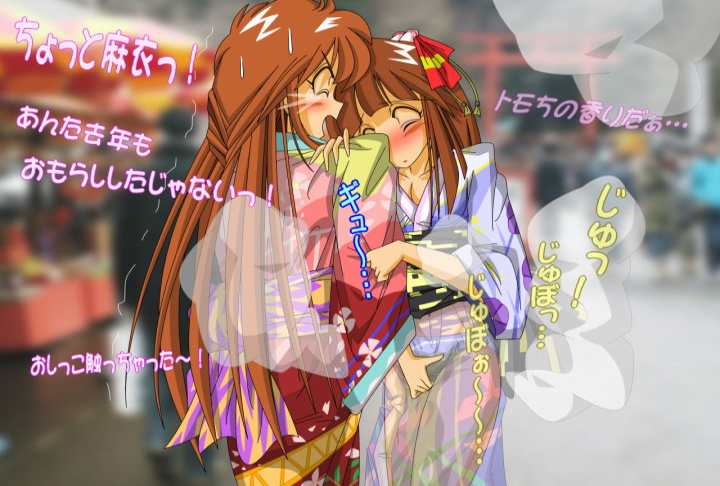 3人で初詣。麻衣の大好きな甘酒配布中。