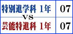 特別進学科1年生vs芸能特進科1年生、只今の成績はなんと07対07!!