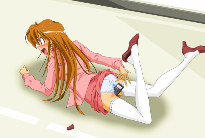 転んだ拍子に手に持っていた携帯は詩織のペロっとめくれたスカートの内側、