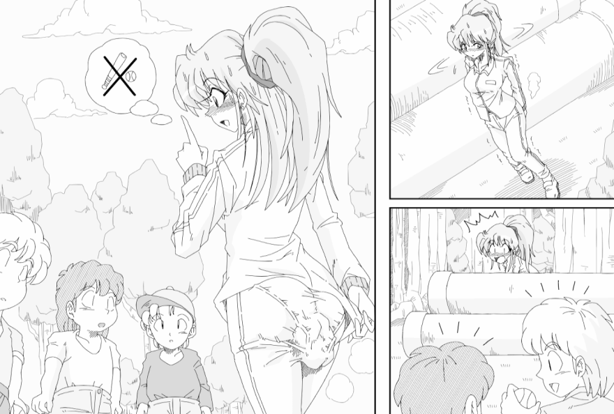 | 詩織編 | うんちをしようと公園のトイレを使おうとするが全て使用中。物陰でしようとすると子供が遊んでいるためできず、限界が来ておもらし。子供にも見られてしまう。 |