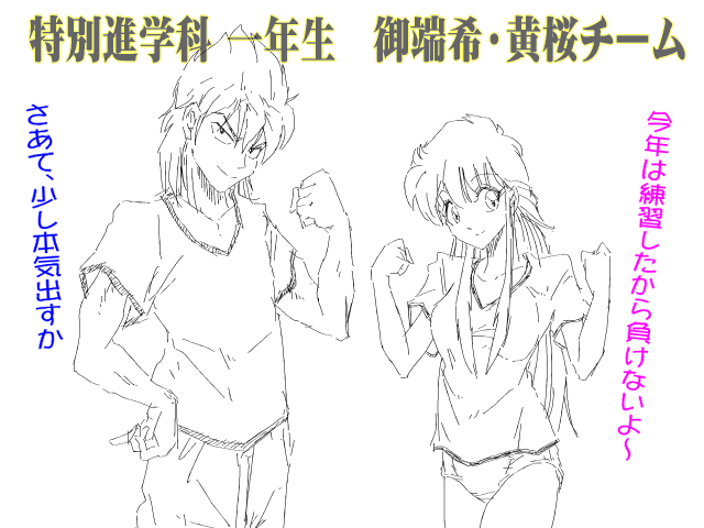 矢野 「おい! 雫の教諭ども!!第一戦は俺と彩の対決にさせろ!いいなっ!」