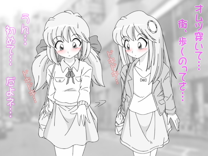 田舎の電車とは違って割りと混む都会の電車。学校や自宅近辺に慣れたとは言え遠出の移動はまだぎこちない二人。