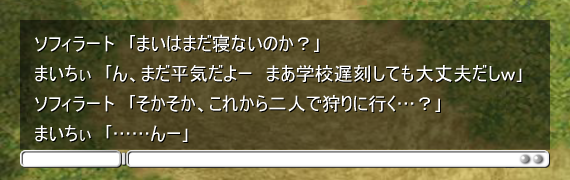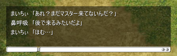 狩りも終わり休憩中の溜り場、指定席のマスターの隣で麻衣がちょこんと座る。
