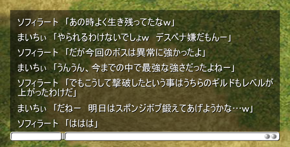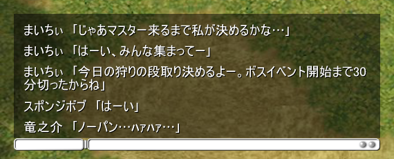 狩りが目的だけではなく、ただ喋るだけの時間もまた楽しい。
