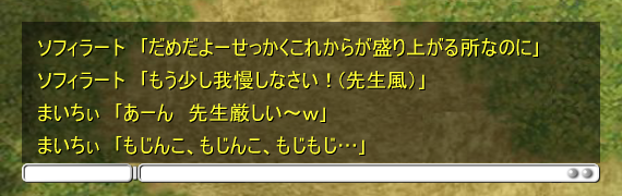 そして我慢しつつも誤魔化し誤魔化しでソフィラートの話を聞く。