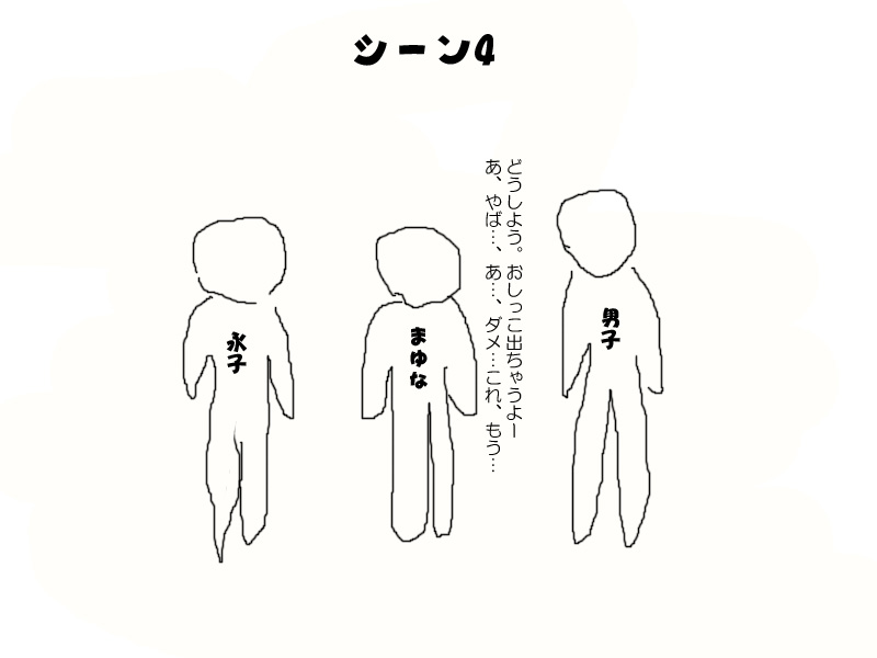 まゆな「あぁ…もれちゃう…。どうしよう。おしっこ出ちゃうよー><」