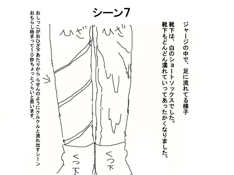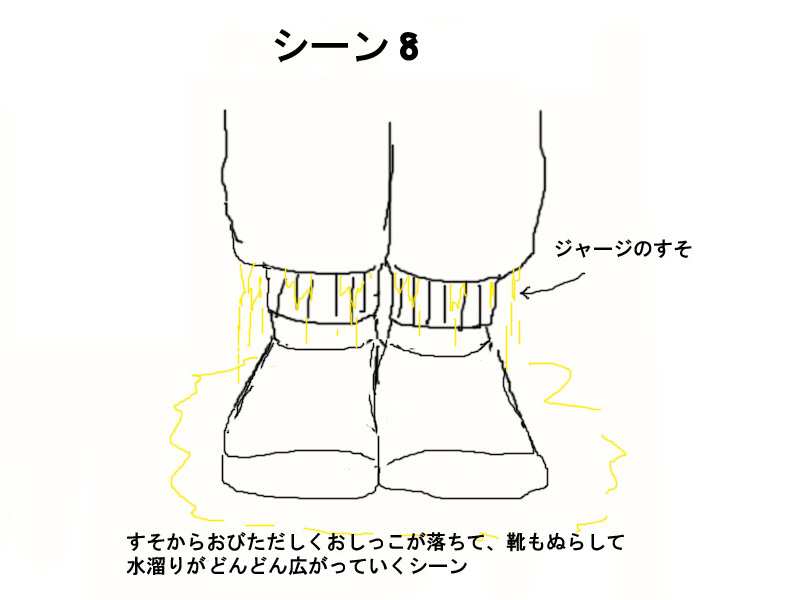 そしてそのあと、ジャージの裾からおびただしくおしっこが落ちていて、靴下や靴を濡らして行く様子や、