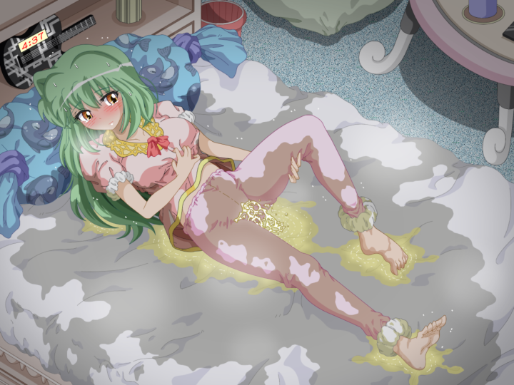 布団の中でパジャマ姿のままおしっこを放出してあっというまにマタにシミが広がり、布団にもシミを作り始めた…。