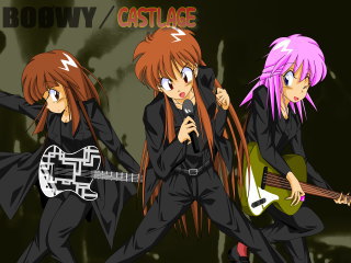 BOOWYを聴きながら制作していたらむしょーに描きたくなりファン魂が蘇り完成したのがこの一枚。髪型もBOOWYっぽく描いてみたものの人物見分けが不可能となり元の髪に…。