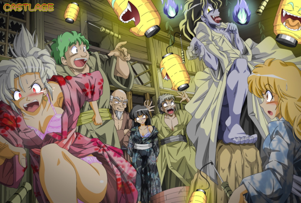 どこかで見た事のあるシチュ絵ですが今年の夏記念トップ絵第一弾は大人チームです。お化け屋敷は定番ですね^^b |