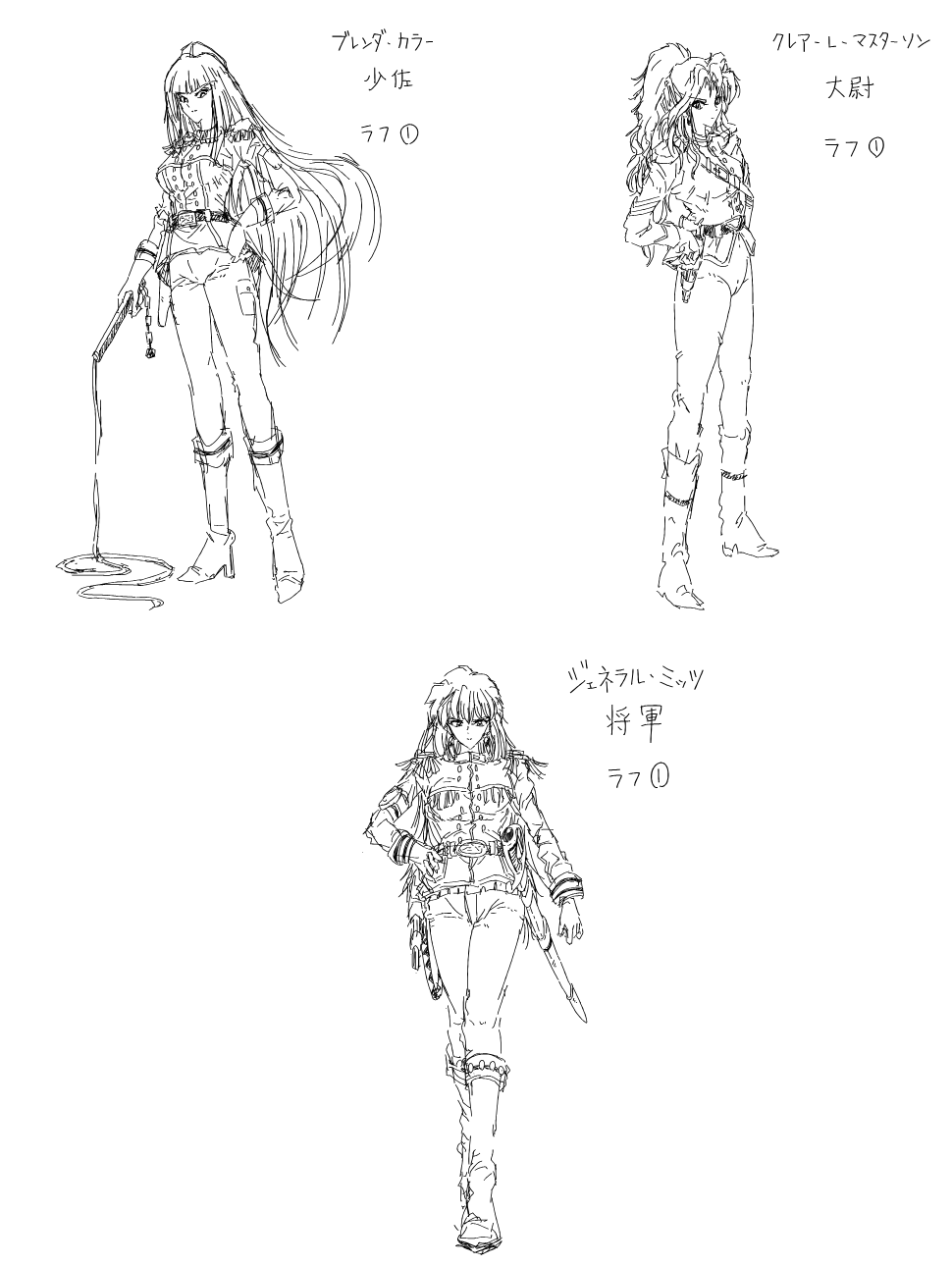 軍人女性陣の制服ラフ絵ですネ