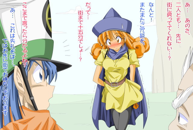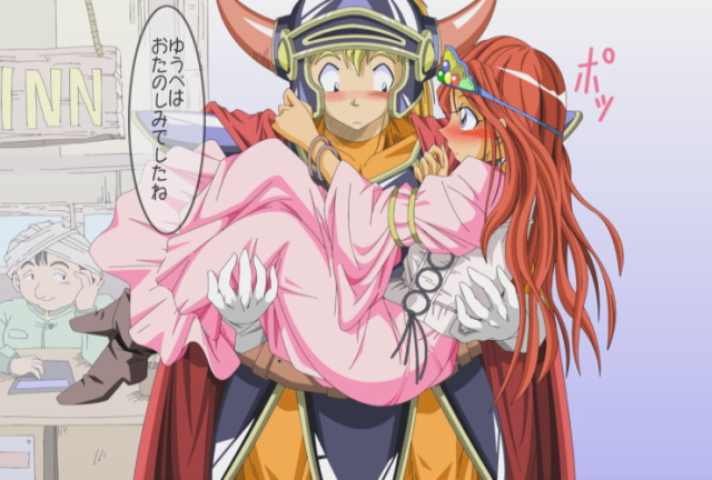 | 01 お楽しみでしたね 02 夕べのおもらし 03 戻る おしっこがしたいのを言い出せずにいたらそのままお漏らし。ドレスが濡れたままお城に帰るのが嫌だったので宿屋に立ち寄り宿泊、ローラ姫のおしっこで濡れた勇者ロトは興奮していて・・・翌朝宿屋の主人に「ゆうべは おたのしみでしたね」と言われて2人とも大赤面。 |