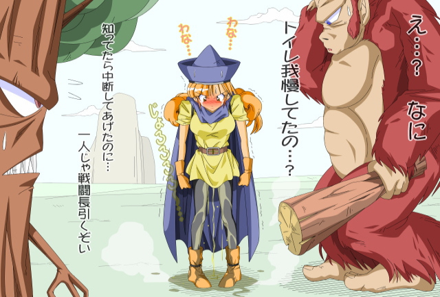 投稿者:ほろほろさん 掲示板ナンバー[127] 囚われの身のローラ姫、おしっこしようとしたら勇者ロトが見張りのドラゴンを倒し部屋の中に入ってくる。大急ぎでするのをやめて熱血バカの勇者ロトに言われるがまま、お姫様抱っこで洞窟の外へ。勇者ロトのMPが切れててキメラの翼もないために勇者ロトはローラを抱っこしたまま徒歩で帰る事に。 |