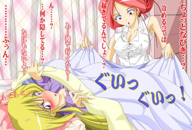 | 今日はりんごが朝ごはん担当。なびきを起こしに部屋へ訪れるりんごだがどうやらなびきは起きている様子。でもなぜか布団から出ようとしない… |