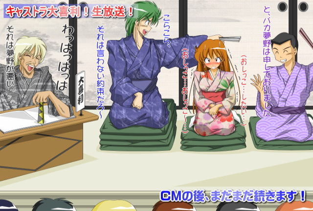 | キャストラTVアナウンス大喜利。珍しく豊臣カメラや織田ディレクターも出演の中、全国生放送でまたもや尿意に襲われる詩織。観客の前でもらしてしまうのか…? |
