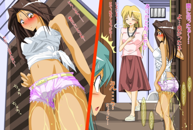 | 母娘3人でオールスター観戦。母はビールが進み予防していたおむつにおもらし。試合後、彩は女子トイレの長蛇の列、限界の百合のためトイレの順番を譲ってあげます。百合は慌ててトイレに入りますがパンツを下げるのが間に合わずおもらし。その直後、彩も限界がきて、タイトなミニスカートでしゃがみこんでおもらし。(タイトなミニスカのお尻からおしっこが漏れるところがみたいです。) | ||