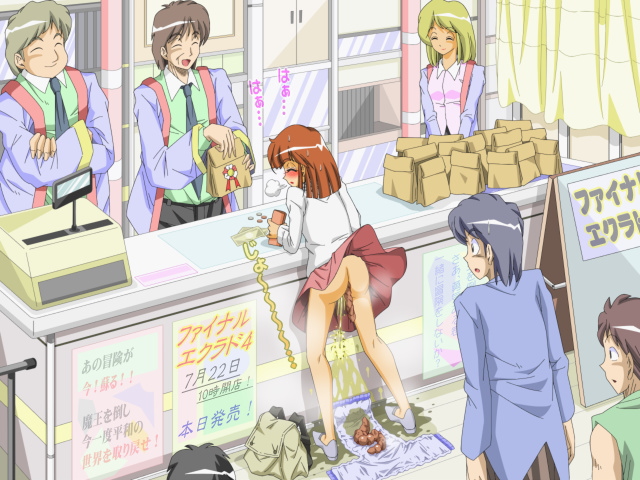 あふれ出したおしっこは、レジのカウンターの壁にぶつかり