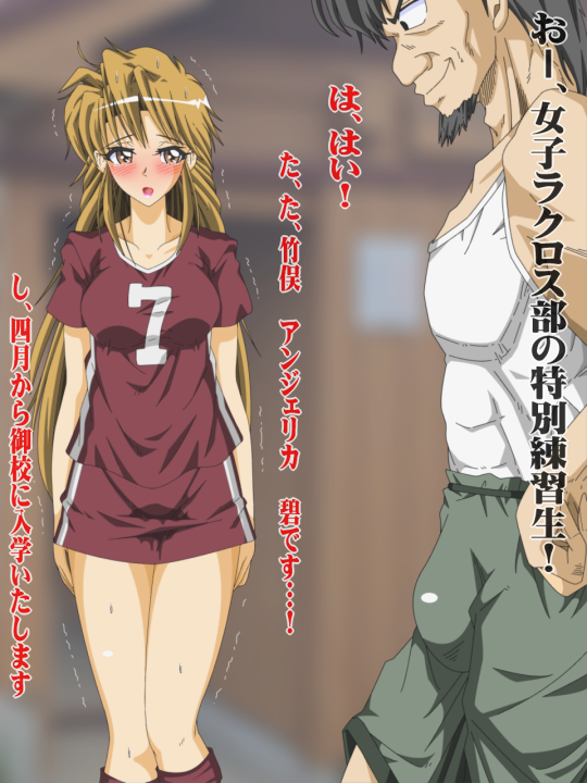 | 2月の身の切るような寒風が吹きすさぶ。 そんな2月の晴れの寒い日も聖水学院大学の女子ラクロス部の専用グランドからは熱気のこもった声が聞こえる。 コートを激しく走り回る聖水学院大学の女子ラクロス部の練習は、体温が上がりすぎないこの時期がもっとも効果的なのだ。 そして4月からの大学リーグ対抗戦に向けて最後の仕上げの時期に入っていた。 芝生のコート上を走り回る女子大生の体からは体温で湯気が立っていた。 冬場の遅い夜明けの中、ナイター設備まで使って早朝から始められた練習は開始からそろそろ3時間が過ぎようとしていた。すっかり明るくなり、2月の晴れ渡った空がラクロス部の女子大生を包んだ。 「おい、センター!もっと早く、パス出せ!」 「それからAT(ポイントゲッター的ポジション)!、もっと早く動いて、パススペースを作れ!」 大きな声で檄を飛ばす女性がいた。 「はい!」とセンターとATの選手が答える。 大きな声で檄を飛ばしているのは、西 香織。 彼女は聖・モレーニョ女子学院大学のセンターをつとめリーグ優勝に貢献し、かつては日本代表にも選ばれた美しすぎる天才ラクロスプレーヤーだった。 そんな彼女が日本代表を引退した28歳のときに、聖水学院大学のコーチの依頼が来た。 香織は母校の指導の夢もあったが、強すぎるモレーニョ女子大に対抗するチームを作り、女子ラクロス会を盛り上げていきたいとも思っていたので、この依頼を受けた。 それから聖水学院大学の女子ラクロス部は全国2位の実力をつけた。 その功績が認めれ、香織は3年前に聖水学院大学の女子ラクロス部に若干30歳で大抜擢されたのだ。 そしてその年に、1年生で入学してきたのが天才ゲームメーカーの加藤 美樹(かとうみき)と小柄ながらスピード抜群の小椋 美紀(おぐらみき)だった。 W-MIKIと呼ばれ、そのルックスと天才的プレーからアイドル的人気を誇っていた。 香織の監督就任から丸三年。すでに33歳になり4月には34歳になるが、その美貌は衰えていなかった。選手時代はムードメーカーであったが、今は厳しい指導者の顔つきとなっていた。 そんな彼女の指導と緻密な戦略、そして2人のキープレイヤーによって圧倒的な強さを誇る名門チームとなったがどうしても越えられない壁があった。 それは、女子ラクロス部22連覇という恐るべき記録をもつ聖・モレーニョ女子学院大学だ。 W-MIKIと同期入学には、聖・モレーニョ女子学院大学のフルバックの司令塔・姫路さやか、長身の天才ゴールキーパー・皆藤 美波、そして2年生のポイントゲッター・佐伯 奈々、その双子の妹でセンターの佐伯 良々(らら)ほか厚い選手層で安定した強さを誇っていた。 昨年秋のリーグ戦では、3年生になったW-MIKIを要しても聖水学院大学はまさかの大惨敗を喫したのだ。 安定感抜群のさやか・美波のディフェンスラインに、成長した奈々と良々の息の合ったの鋭い動きに聖水学院大学はついていけなかった。 そして、その敗戦の日から、西 香織監督の地獄の特訓が始まったのだ。 W-MIKIも4月からは最終学年。天才ともてはやされたがタイトルがなく、どうしてもリーグ優勝をしたく、この西の地獄の練習に食らいついていた。 6時から1時半、ウォームアップを兼ね、学校のまわりの外周をダッシュに近いスピードで走る。平坦な道ではなく、アップダウンが激しいので足腰が鍛えられる。 次はグランドに戻り、高速パスの練習を30分。そして8時からお昼まで4時間、ミニゲーム形式でひたすらグランドを走らされる。 休憩はなく、許されているのはパフォーマンスを維持するための栄養ドリンクの水分補給だけだった。 昨年の秋の大会で惨敗した後から、この過酷な練習を取り入れているので、今残っている者たちはかなり高いパフォーマンスで練習についてきていた。 素早いドリブルとパスまわしが美しく、香織をはじめ聖水学院大学女子ラクロス部は春のリーグ戦の手ごたえを感じていた。 W-MIKIの動きは目を見張るものがあったが、一人だけ違うユニフォームで練習参加している長身で色白、ブラウンの瞳をした美しい選手の動きが光った。 彼女は竹俣 アンジェリカ 碧(たけまた アンジェリカ あおい)。 イギリス人とのハーフで、高校時代から注目されていた天才ポイントゲッターだった。 一人ユニフォームが違うのは、彼女は4月からの入学は決まっているものの正式にはまだ高校生のため、特別参加という名目で高校時代のユニフォームで練習に参加していた。 175p以上はあると思われる長身から繰り出されるシュートは、小椋美紀のスピードを生かした攻撃と合わさって厚みのある攻撃が生まれようとしていた。 「行ける・・・」 香織は内心、そう思いながら股間に広がる生暖かい感触に恍惚の表情を浮かべていた。 そう練習中は水分補給以外の休憩は認められないのだ。 学生にそれを求める以上、指導者も席を外さない。 それを実践するために香織は大人用おむつをして指導をしていた。 寒い2月の日、