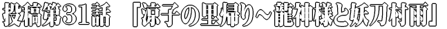 | ちゅん、ちゅん・・・ 早朝から真夏の太陽が照り付ける中、シーツを丸め腰にバスタオルを巻いた女が庭に出てきた。 彼女はそのシーツを、背伸びをするようにして物干し竿にかけた。背伸びをすると尻が突き出され、薄いバスタオル越しになまめかしいヒップラインが現れた。 そして物干し竿に広げたシーツには大きな地図が描かれていた。 シーツをかけると、「ふーっ」と女は大きなため息をついた。 そのことの発端は、婦警時代、交通取り締まりをしている夢だった。 交通違反の車が延々と続いていた。 一つひとつ、切符を切るが、埒があかない。そうこうしているうちに尿意を催した彼女は、車の陰でこっそり放尿をする。 何故か放尿をしようとすると車が動き出し、なかなか身を隠せない。 パンツを下したかと思うと車が動くの、また履いて次の車の蔭へ。 しかし、その車も動き出し、同じことの繰り返し・・・。 「そうだこのまましちゃお!」 そう思いしゃがみこんで服を着たまま放尿・・・ 生暖かいものが股間とお尻に広がる・・・・ そして、その生暖かさで目が覚め、慌ててタオルケットを取ると、短パン越しに黄色い尿がどんどん溢れていた。 三十路前の女が汚い寝小便をしてしまっていた。 ずぶ濡れになったパンツを脱ぎ、陰毛越しにクレパスに沿って尿をふきとり、バスタオルを腰に巻いた。 シーツをもって外にでるとすっかり日が昇っていた。 「涼子、まだ治らんのか?」 縁側から老いた女性の声が聞こえた。 「おばあちゃん!」村下涼子は一瞬びくっとしたが、祖母の声だと気づき照れ笑いを浮かべた。 「うん、もう来年30歳なのに、毎月2回くらいはしちゃうの・・・」 いつもの涼子らしくなく、しをらしく答えた。 「おまんの、おねしょ癖も我が村下の里の伝説と関わりがあんのかもなぁ。」 祖母は濡れたシーツを見ながらしみじみ答えた。 「伝説って、そんなの迷信でしょ。だって、お母さんも、おばあちゃんもおねしょ癖なかったでしょ?」 「ワシも、由起子もおねしょ癖はなかった。お前には話しておかんとな・・・東京の由起子は何も話しておらんのやろ?」 「うん、おかん・・・いやお母さんは何も・・・」 「それじゃせっかくの機会じゃ話しておくかの・・・」 そう言って祖母は縁側に腰かけゆっくりと話し始めた。 「あれは戦国時代の末期やったかの、京の都にもほど近い村下の里は刀鍛冶で有名でな。公にはなっとらんけど、“村”の付く刀はほぼワシらのご先祖様の作品じゃ。」 「そんな中で、不思議な刀を打つ名工がいてな、名前は伝わっとらんのじゃが、その者が作る刀が不思議でな・・・その刀を見た若いおなごは恐怖で小便をもらすか、何とも言えない淫猥な感情を抱いて小便をもらすか・・・いずれにしても若いおなごは皆、その刀をみると小便を垂れ流したというんや。」 「そんなの非科学的じゃない?まぁ昔話にはよくあるわね。」 「まぁまぁ話はこれからやさかいにあせらんようにな・・・」 いぶかしげな顔をする涼子をいさめるように話をした。 「その刀は、おなごは小便をちびるだけじゃが、その切れ味が抜群でな、女の小便と男の返り血、どちらも雨が降るように見えての、それで村下の里の妖刀は“村雨”と言われるようになったらしいんや」 「ふーん、それと私の、寝小便・・・おねしょとどういう関係があるん?」 涼子は祖母につられて京都弁になっていた。 「戦国時代も終わり秀吉様が天下をおさめていたころ、家康の裏の軍勢、つまり服部半蔵の一味じゃの、奴らが秀吉様の首を狙って近江からこの村の近くを抜けて迫っているということが、村下の里につたわったんじゃ。村下の里は秀吉様に仕えておったので、半蔵を討とうと討伐隊が組まれたんや。」 「へぇ、結構大変な時代やね」 また涼子はさらに京都のイントネーションがきつくなってきた。 「それからどーなったん?」 「ふむふむ、その中に19、20歳位の美しいくノ一がいてな、甲賀のものやったんやけど、秀吉様に世話になったということで甲賀の一味が村下の里の側についてくれたんじゃ。その中のくノ一やったんやね。」 「でもな、当時の村下の一番の名刀は“村雨”じゃ。そのくノ一は持つたびに小便をちびっていたらしい。しかし、さすがはくノ一や。ひと月もせんうちにその恐怖に打ち勝ち、村雨を使いこなせるようになったらしいんや」 「へー、めっちゃすごいやん。それからどないなったん?」 涼子はすっかり京都弁になっていた。ほとんど京都に住んでいないのに不自然なまでの順応性だった。 「しかしな・・・いくら精神力が強くても、寝ているときはな・・・」 「えっ?」 涼子はハッとして身を乗り出した。その腰を上げた瞬間、バスタオルが少しほどけて尻のワレメがみた。慌ててバスタオルを巻きなおす涼子。 「ふむ。そのくノ一は寝小便に悩まされるようになっての・・・年頃の娘やったからつらかったやろうなぁ。さらに甲賀の棟梁はきびし