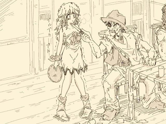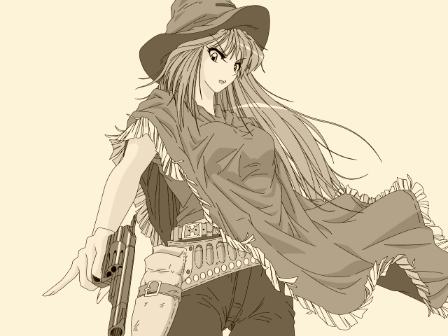 キャストラ・ウエスタン ノワール 第1話 「荒野のノワール涼子」 ミゾレの店 町の中心部にある酒場。 「パブ ミゾレ」は今日も西部をかける旅人で込み合っていた。 町の常連、旅の賞金稼ぎ、ドさ周りの劇団など小さい店はごった返していた。 店のオーナーのミゾレ(加藤ミゾレ)の美貌に加えて、ウエイトレスにレイカ(遠山麗華)、マユミ(MAYUMI)という愛嬌のある美人を揃えていたこともあり店は男たちで大繁盛していた。唯一の男性はケツ(決籾男)という腕の立つバーテンダーだった。 今日もいつもの盛り場の雰囲気だったが、保安官が亡くなって以来、徐々に治安が悪化してきていた。 そして今日もならず者の客が幅をきかせていた。 「おい、ねーちゃん!、こっちの酒はどーなんてんだ!」 無精ひげを生やした大柄な男が叫んでいた。 左手の甲には赤いコブラの刺青があった。 「おい、あれ、レッドコブラのマークだせ・・・」 「そうだな、あいつらがいるなら今日は帰るか・・・」 客たちがひそひそ話をし始め、徐々に客が引いていった。 満員だった店内も数組の客とレッドコブラの一味を残して閑散とし始めていた。 「マユミちゃん、あの3人組の酒なの。イヤなら私が行こうか?」 ミゾレは厄介な客だと思いマユミを気遣った。 「そうよ、マユミが一番年下だし、私もかわるよ。」 レイカも続けた。 「ちょっとおっかないけど、たぶん大丈夫です!」そう笑顔で応えると、元気よくトレイを持って行った。 「お、お待たせしました。」 マユミは3人分の酒をトレイに乗せテーブルまで持ってきた。 しかし、一味の一人が足をかけ、マユミは転び、酒を溢した。 「おい、おい、お嬢ちゃん。せっかくの酒が台無しじゃねーか。え?」 「パンツ丸出しで転んでやがるぜ、へへへ」 マユミは慌ててスカートを直し、下着を隠した。 「ごめんなさい」 恐怖で涙をためて謝るマユミに嫌味な顔立ちの細身の男がマユミの首筋にナイフを当てた。 「ごめんなさいだぁ?俺たちを誰か知って、こんなことしてんのか?あん?」 騒ぎに気が付いたミゾレはバーカウンターから飛び出した。 「すいません!すぐお酒は取り替えますから・・・」 そういうミゾレに大柄な男が応えた。 「なぁ姉ちゃん、こっちは気分が悪いんだよ。取り替えて済む問題か?はぁ?」 と顔を近づけ、臭い息を吐いた。 「それとも、ねーちゃんの体で弁償してもらおうか?へへへ」 と顔を近づけ、左手でミゾレの胸を鷲掴みにした。 「やめてください!」 ミゾレは男の手を払いのけた。 その時、イヤらしい笑い声が響き渡った。 ![]() マユミの側にいた眼帯の男がイヤらしい顔をして笑い声をあげていた。 「なんだ、この女、ション便もらしてやがるぜ。」 ナイフを首筋にあてられたマユミは床にしゃがみこんだままガタガタと震え失禁をしていた。 床に黄色い尿が広がって行く。 「おーすげー、いい歳こいて、この女、ション便してやがる。真っ黄色じゃねーか。何喰ってんだ?」 「お嬢ちゃん、かわいい顔して匂いきついなぁ!ガハハハッ!」 と男たちは騒ぎ出した。 マユミは恐怖と恥ずかしさで気がおかしくなりそうだった。 「マユミ・・・大丈夫。怖くないからね」とミゾレは優しく声をかけた。 その瞬間、大柄男はカウンターに向かって、銃を放った。 ケツは肩を撃ちぬかれて吹き飛ばされた。 ケツがショットガンを取り出していたのに気づき、男はケツを撃ち抜いたのだ。 弾丸がケツの右肩を貫通した。 「うっ!」 ケツがカウンターの内側に倒れこんだ。 「く、くそ!」悔しそうに唇をかんだが、痛みで意識が遠のいていった。 「あ・・・あ・・・」 その銃声を聞き、ケツの側にいたレイカはカウンターの前で立ったまま足をガタガタと震わせていた。 そしてスカートの間からポタポタと黄色い雫が垂れ始め、腰の力が抜けるようにへたり込んだ。 「おい、おい、この店の女の股の締まりは悪いなぁ。二人もション便漏らしやがったぜ。」 細身の男が笑いながら、マユミの髪をつかんで引っ張り上げ、立たせたかと思うとナイフでスカートを切り下着をさらさせた。 マユミの白い下着には薄黄色の失禁痕がしっかりついていて、縦に割れた恥部が透けていた。 「ひとりずつ順番に面倒見てやるよ。ひひぃ。」 細身の男はミゾレの方をみて笑った。 「やめてください!」ミゾレは声をあげたが、眼帯の男がミゾレのこめかみに銃を押し当てた。 「静かにしろ。お前はあとでゆっくりかわいがってやる。俺好みの女だ。だから、俺に引き金を引かせるなよ、へへっ・・・」 その男は眼帯をしていた。 「お前、歳いくつだ?あん?」 細身の男は濡れたマユミの下着にナイフを当てて聞いた。 「・・・・じゅ、十七歳です。」 「へん、まだ青くせぇガキか。そりゃション便もちびるわな、ははは」 「お兄さんが、きれいにしてやるよ。」 下着の上からナイフを当て、ワレメにナイフを沿わせた。 ナイフの冷ややかさが濡れた下着越しに伝わってきた。 マユミ