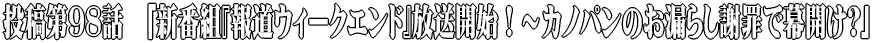 | 新番組『報道ウィークエンド』放送開始!〜カノパンのお漏らし謝罪で幕開け? CC2019年10月19日(土)18:00 キャストラTV 報道局スタジオ 先週、波乱の幕開けとなった『報道ウィークエンド』。 人気女子アナ・カノパンを迎えての新番組・報道ウィークエンドだが、スタジオは新番組の華やかな印象とは異なり、暗めの照明にグレーのスーツを着た加納綾子のワンショットから2回目の放送が始まった。 番組が始まると、加納綾子は、まっすぐカメラを見つめて、深々と頭を下げた。 そして、顔をあげると次のようにつづけた。 「先週は、視聴者の皆様にご不快な思いをさせてしまい、誠に申し訳ございませんでした。」 そう言って、また深々と一礼をした。 「先週の被災地からの生放送で、私は尿意をこらえきれず・・・・」 加納綾子は、一瞬、言葉に詰まり頬を赤く染めたが、振り絞るように続けた。 「こらえきれず失禁しました・・・しかも、汚れた衣装のまま残りの50分余りの時間放送を続け、視聴者の皆様にご不快なものを放送し続けてしまいました。誠に申し訳ございません。」 少し目も潤んでいるようにも見えた。 「綾子、頑張るのよ・・・」 サブ室にいる明智光子はつぶやいた。女性を失禁から救うための24時間テレビの企画は、スポンサーがつかず、彼女たちの思いが潰(つい)えた矢先の出来事だった。 正確に言うとKAWAYAグループが名乗りを上げたが企画に折り合いがつかなかったらしい。これはまたの機会に触れよう。 そのため加納綾子のフリーアナウンサーとしてのキャストラTVの初番組は、10月から始まる夕方の報道番組「報道ウィークエンド」になった。 そしてその初回の放送は、前日に上陸した台風55号の影響で特別番組として被災地からの生中継となった。 そして、その初回の放送で、加納綾子は恥ずかしいシミを全国に晒してしまったのだった。 サブの光子の思いが届いたのか、綾子はグッと息を呑み言葉を続けた。 「しかし、被災地にはトイレの十分足りておらず、報道陣が被災者の方を差し置いてトイレを使用することもできず、我慢をして放送した結果このような事態を招いてしまいました。」 カメラが変わり、加納綾子は、力強く右のカメラに振り向いた。 「皆さんのまわりの女性はどうでしょうか?トイレで困ってはいないでしょうか?女性は尿意をこらえにくい上、トイレ以外の場所で用を足すことも難しいのです。これを機会に被災地の女性用トイレの増設を検討いただけないでしょうか!!」 そしてCMへと入っていった。 10日前、CC2019年10月12日(土)被災地龍神村付近 「わぁーここも土砂崩れです!迂回ルートをとります!」 徳川はハンドルを切り、山道を抜けていった。 「徳川!死ぬ気で走れ!6時の放送まであと20分しかないぞ!」 織田の檄がとんだ。 その傍らで加納綾子が、タブレットでまとめた資料と被害状況を読み込んでいた。 ベージュのパンツにモスグリーンの長靴が印象的だった。 そして、ベージュ―のパンツに包まれた彼女の長い脚は何度も組み替えられていた。 「ふーっ・・・織田さん、避難所についたらトイレに行って来ていいですか?」 加納綾子は太ももの内側に力を入れるように内またになり、上目遣いで言った。 「何?お前、オムツしてないのか!」 織田が驚いたように言った。 「お前ももうベテランなんだから、非常事態に備えてちゃんと準備しろよ!」 加納綾子はバツが悪そうに舌を出した。 「すいません・・・まさかここまで5時間もかかると思ってなかったんで・・・それにズボンだとオムツ履くと、モコモコしてなんかバレそうで・・・かと言って被災地でスカートも履けないですし・・・」 「ばっかもん!お前は、8年前、新人の時、俺の中継車をション便浸しにしたんだぞ!学習しろ!」 織田が顔を真っ赤にして怒鳴った横で、加納綾子はうんざりした顔をした。 「すいません・・・あの時は大学卒業したばかりで、織田さんや怖いスタッフの皆さんにトイレに行きたいって言いにくくて・・・もう大人ですから、大丈夫かと・・・もう、それにあんまり言わないでくださいよ!あれはコーヒーを溢したことになっているんですから!」 加納綾子はそう言いながらモジモジと尻を左右にゆすった。 「大丈夫じゃなさそうじゃないか、まったく!徳川!急いでやれ、10分前に到着すれば、トイレに行っても、本番には間に合うだろう、徳川、お前次第だぞ!」 徳川はびっくとした。 「もし間に合わなかったら、1時間半、しっかり我慢しろ!俺の番組で、また女子アナが失禁したら、俺がトイレに行かせてないパワハラ上司だと思われるからな!それにお前も、今度もコーヒー溢したでごまかせるとは限らんぞ!」 織田はぷんぷんと怒っていた。 17時51分・・・・龍神村避難所 一台のロケ車が避難所になっている小学校の校庭に到着した。 準備を考えると普通は間に合わない時間だが、そこは統率の取れた織田チーム、間に合わせられるギリギリの時間だった。 「よーし、豊
