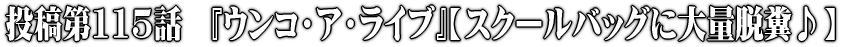 | わたくしの名前は「くるみ」、高校2年4組の女子高生。最近、同じクラスの男子高生「シドウ」が通っている学校に転校してきたばかりで、ようやく学校生活にも慣れてきた頃の出来事だった。 放課後、忘れ物を取りに誰もいない教室に戻ったとき、おなかから重低音がひびいた。 『ずっと便秘気味でしたのに…どうしてこんなときに突然…うんちが…』 気持ち悪い汗が噴き出す。 『ここは3階だけど…今は工事中だから…1階のトイレまで間に合いそうにありませんわ…』 『もし漏らして、誰かに見つかったら…ああ…どうしましょう…』 そう思うと余計に汗が噴き出し、おなかのうごめきは激しくなる。我慢できない。 まだ、生徒たちは何人か学校に残って校庭にいるらしい。 教室を見回すと、たった1つだけ机に置いてある、唯一のカバンが、わたくしの目に入った。 『あれは、シドウのカバンですわ!!』 わたくしは、他の生徒より目立っているためか、いつもいじめられている。 いじめてくる生徒は何人もいたが、特別なのはシドウ。いつもわたくしをかばってくれる人だった。 『あの、優しいシドウに、わたくしのうんちをたっぷりご褒美をあげましょう♪』 そう決断すると、後は早かった。わたくしでもびっくりするくらいだった。 『もしこのままトイレに行ったら…もう絶対に間に合いませんわ…』 そう考えながら、シドウのカバンを開けると、中身を全部取り出し、机に置いて空っぽにした。 カバンを床に置き、口を上にして両脚ではさみ、そのまま座ってパンツをめくり上げた。 『このカバンも、ただ単にシドウに使われるより、わたくしの便器になった方が幸せじゃん♪』 そう考えると、お尻の穴を抑える力が自然に抜けて、限界になったお尻の穴が開いた。 その瞬間、おなかに溜まっていたものが、ものすごい勢いでうんちが押し下げられて、お尻の穴からカバンを目がけて一気に噴き出しはじめた。 「ブリュッ…ブボッ…ブボボボボッ〜♪」 「ぶりゅっ…むりゅっ…もりゅるるる〜♪」 排泄音と共にうんちが肛門から頭が出てきたその瞬間… 「チュドーーーン!!!」 ロケット噴射のように大量のうんちが一気にカバンの中に落ちていく。 約1秒、一瞬にしてカバンの中がてんこ盛りのうんちまみれになった。 『ふぅ……すごい量が出ちゃいましたわ…』 ちょっと呆然。 『けっこう大量かな?便秘だと思っていましたけど…』 勢いよく、かなりの量を出しきると、おなかの痛みはなくなっていた。 すっきりして、ここが教室ということも忘れて、幸せな気分になる。 なにげなく周りを見ると、さっき床にばらまいたシドウの教科書やノート、プリントが目に入る。 その中にひときわぐしゃぐしゃな紙があった。お尻を上げて拾って開いてみた。 ――――29点。わ、ギリギリ赤点の惜しい点数。 『この紙も、赤点になったテスト用紙として使われてかわいそうですわ。それよりも―――』 テスト用紙をくしゃくしゃと丸めて、やわらかくする。 『学校のテスト用紙、あんまりいい紙ではないですけれども、それでよかったですわ。』 すっかり軟らかくなった紙を、お尻にまわした。 丁寧にお尻の穴と、お尻の周りをふき取ると、用済みのうんちがべっとりついた紙を丸める。 やわらかいうんちだったが、一気に出たおかげであまりお尻が汚れなくて済んだ。 丸めた紙を床に置き、パンツを上げて、後ろを振り返ってみると… 『うあ…、カバンいっぱいのうんちの山…。トイレだったら流れないんじゃないかしら。』 『これがさっきまでわたくしのおなかで暴れていたのですね…』 わたくしのうんちとは思えないほどの極太大量の様子や質感、それらを一瞬にして勢いよく排泄した素晴らしい出来栄えのうんちに思わず絶賛と感銘の自己満足の気持ちに満ち溢れていた。 『わたくしって意外とテクニシャン!?』 『おなかが軽くなって、気分は爽快ですわ。』 『それに、あの優しいシドウにご褒美あげちゃった感じ♪』 『成敗!!』 なんか、正義のヒロインになった気分。 『やばっ…いけませんわ。早く教室から離れないと。』 カバンを元に戻し、急いで教室からでると、誰かが階段を上ってくる足音がきこえた。 誰もいない隣の教室に、あわてて身を隠す。 階段を上ってきたのは、シドウだった。 そのままシドウが、自分の教室に入るのがみえた。 しばらくして、今まで見たことのない泣き顔で、シドウが教室から出てきた。 わたくしのうんちがいっぱいつまったカバンを抱えて。 半泣きで、顔を真っ赤にしたシドウは、廊下の窓を開け、カバンを投げ捨てる……かにみえた。 何を思ったか、混乱したシドウは、開いた窓からカバンを出して思いっきり振った。 3階から放り出されたカバンの中身、つまりうんちは空中で飛び散り、 勢いよく広がりながら落ちていった。 下では、同じクラスの生徒たちがたくさん集まっていた。 その後、教室にうんこまみれのテスト用紙が落ちていたことから、