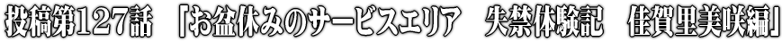 | CC2020年8月12日 東名高速道路 「結構、混んでるから実家に着くのは遅くなるわ。ご飯は途中で食べて行くから…うん。えっ!お見合い?いらない!いらない!運転中だから切るね。」 美咲は母親からの見合い話を遮るように携帯を切り、携帯通話用のヘッドセットを助手席に投げた。 「もう今年27歳になるからって、結婚、結婚ってうるさいんだから!まったく!」 美咲は口をとがらせて頬を膨らませた。 お盆の帰省もどうせ結婚のことを聞かれると思ってやめようかとも思ったが、鳥羽の海の幸が恋しくなり、三重県鳥羽まで自慢の黒のハイラックスサーフを走らせていた。 東京を出てから順調に進んでいたので休憩も取らず、運転好きの美咲はロングドライブを楽しんでいたが、名古屋が近づくにつれ、車が徐々に混みだし次第にノロノロ運転になっていった。 「しまったなぁ。さっきSAで休憩取っておけばよかった…さすがに疲れた。それに…」 美咲は下腹部の重みを感じ始めていた。 「トイレだけでもさっき行っておけばよかったかな。けっこうオシッコしたくなってきちゃった。」 美咲は運転しながら内ももを絞るようにして尿意を押さえようとした。 「まぁ、でもなんとか我慢できるかな、うん」 根拠はなかったが、このときはまだ余裕があった。 しかしこの余裕はゆっくりと焦りに変わっていくのであった。 それから1時間… キリキリ…まさにそんな感じの痛みが美咲の尿道から下腹部の辺りに走り始めていた。 「ふっー…きっつい…」 美咲は堪らず左手で太ももの付け根をトントンと叩いて尿意をごまかそうとした。 長い車の列の先にはパーキングエリアの表示が見えていたことが少し安心できる材料だった。 「パーキングエリアまではもう少し!我慢!我慢!美咲〜お前はできる!」 美咲は車の中で声を上げて自分を励ましていた。 その間もキリキリと膀胱が痛んだ。 『キリキリと痛むのは膀胱が伸びきっている証拠ね…早くしないと失禁しちゃう…この歳でおもらしの危機なんて…』 美咲は下腹部をさすりながら運転を続けた。 パーキングエリアに入るにも30分ほど時間がかかったが、美咲は漏らすことなくパーキングエリアにたどり着き、車を停めた。 慌てて車を降りたが、少し安心したせいか、そのときジワッと暖かいものが股間に広がりそうになった。 「まずい!」 下唇をかみ、尻をきゅっと締めて尿が漏れ出すのを必死に押さえることで決壊はまぬかれた。 そして彼女はデニムにシミができていないことを確認し、女子トイレにへっぴり腰になりながら駆け寄った。 「マジか…」 しかし、案の定、女子トイレには長蛇の列ができていた。 ここは大人女子として、失禁の限界ということを悟られないように何食わぬ顔でその列に並んだが、膀胱は張り裂けそうにパンパンで、行き場を失った美咲の尿は、彼女の一瞬の気のゆるみを狙って尿道口から飛び出す準備をしていた。 美咲はスキニーのダメージデニムに包まれた細く長い脚を前後に組み替えたり、ベルトを引っ張ったりしながら迫りくる尿意に耐えていた。 『おえっ!吐きそう…オシッコした過ぎて吐きそう…漏れそう…ダメダメ!おもらしなんて絶対しない。』 彼女はそう思い、こぶしをぎゅっと握りしめた。そして見えない部分では、柔らかい大陰唇でできた陰裂もそのこぶしと同じようにぎゅっと締め付けられていた。 陰裂を締め付け、飛び出す尿を押さえる行為は、まるで過去のいやな思いがこぼれ出ないようにするようでもあった。 実は、美咲は小学校6年生の時、1度だけ学校でおもらしをしてしまったのだ。 勉強もスポーツもできる大人びた彼女の失禁は瞬く間に学校中の噂となった。 幸い中学から私立に通ったので「おもらし女」の汚名は半年ほどで済んだのだが…。 この話はまたの機会にしよう。 「ふっー」 ノロノロ進む行列に天を仰いで大きなため息をついた。 『まずいな…だんだんアソコの感覚がなくなってきちゃった…まさか、この私が…ない!ない!絶対ない!』 美咲は最悪の想像が廻ったが、首を振ってかき消した。 あふれ出ようとする尿とそれを必死で防ぐ美咲の括約筋の攻防は長く続いていた。 しかし、徐々に尿の勢力が強くなってきていた。 ジュッ… 「あっ!」 美咲は思わず声を上げて、尻をきゅっと締めた。 尿の斥候隊がパンティに攻め入ったのだ。 今度のは車を降りた時よりも量が多かったらしく、じんわりとパンティにぬくもりと不快感が広がった。 『ちょ、ちょっと出た。このままでは…』 そう思って白旗を上げそうな尿道括約筋を強く締め付けた。 さりげなく股間が濡れていないか確認したが、デニムまではまだしみていないようだった。 それが分かりホッと一息をつく美咲だった。 しばらくして、何とかあと数人のところまできたが、このとき美咲の尿火山は噴火寸前の微振動を起こしていた。 小刻みに体は震え、首筋や額には脂汗がにじみ、息は荒くなってきていた。 「はぁ、はぁ、はぁ」 『マ