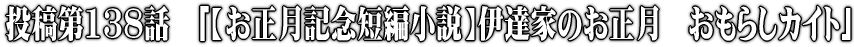 | 伊達家のお正月 おもらしカイト CC2021年1月1日 お正月 晴天 「そうらっ!」 クマのような大男がカイトを引っ張りながら猛ダッシュした。 伊達博人(34歳)は、クマのような大男だが、足ははやい。何せラグビーのフォワードをやっていたくらいだからそのパワーは半端なかった。 カイトはすぐに空高く舞い上がった。 「パパすごーい!」 4歳になる娘の明日香が手をたたいて喜んでした。 「がっはっはっ!博人パパは明日香の前では無敵だぞ!」 ご満悦の博人パパ。しかしその横で浮かない顔をする細身の美人ママ・伊達真紀が二人の元へ戻ってきた。旧制は姫路真紀。以前にも登場したさやかのいとこである。 「博人!博人!」 ご機嫌に凧の糸を引く博人のダウンジャケットの袖を引っ張った。 「どうした、真紀?」 「…あのさ」 「どうした?今、いいところなんだぜ!」 「いや…その…公衆トイレ壊れていて…」 真紀はモジモジとうつむいた。 「そんじゃ、草むらでして来いよ、どうせこの河川敷、俺たちくらいだぜ。誰もみねーよ。」 「いや…その…」 恥ずかしそうに真紀はモジモジとしていた。 異変に気づいた博人はふと、真紀の方に視線をやった。 「あの…」 博人は真紀の足元に目が行った。ロングスカートの裾の下にがっつり履いた冬用の白いソックスが黄色く染まっていた・ 「お前…また…」 「でちゃった…」 博人の大きいものがびっくんとたってしまった。 「しょーがーねーなー、そうだパンツ貸して。」 博人はちょっとエッチなお仕置きを思いついたようだった。 真紀も恥ずかしそうにでも少しうれしそうに失禁パンティを脱いで博人に渡すと、博人は凧あげをやめ、その凧(カイト)を取り外し、真紀の失禁パンティを糸に結びつけ始めた。 「へへへっ!」 そう言っていたずらっぱく笑うと、また走り出した。 「博人!やめて〜!」 「どうだ!真紀のおもらしカイトだ!お前、明日香よりもオシッコ近いな(笑)」 博人はいたずらっぽく真紀をいじめた。 そして空高く上がった純白パンティのクロッチ部分は黄色く染まっていた。 「パパ〜私のも上げて〜」 明日香もうれしそうにパンティを脱いで博人に近寄ってきた。 「いやん!」 真紀は赤面しながら尻もちをつき残尿を失禁してしまっていた。 そして新年早々から伊達家の夜は激しかったらしい…。 |