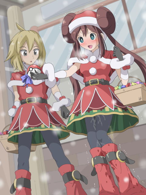 | ここは人工島パシオ この島には、様々な場所から選ばれたポケモントレーナーが、自分を高める為に日々ポケモンバトルを、違う場所からやってきたポケモントレーナー達が仲良くなる為に遊んだりイベントに参加したりとしていた。 そんな、様々な人と人の交流が広がるパシオに、1つの小さな物語が…… キリヤ「クリスマスにプレゼントを届けるバイト?」 ユイ「うん!いつもパシオで頑張るいい子のポケモントレーナー達に、サンタさんからのプレゼントを!って思ってね♪」 雪が降る今日、布団から出るのがとても辛い朝の早い時間に、自分のライバル、ユイが部屋に来ていきなりそんなことを言い出した リーリエ「バイトなので勿論お金は出しますよ」 …どうやら、ユイの仲間であるリーリエも一緒みたいだ。 まあ、今は自分もユイの仲間みたいなところあるけど… キリヤ「…そういうのって、許可取らないと出来ないんじゃないの?」 ユイ「ライヤーさんから許可は取ってあるよ!」 リーリエ「スポンサーはエーテル財団です」 ユイ「そういう訳だからさ、キリヤくんバイトやって!」 キリヤ「…まあ、そういうことならいいよ」 ユイ「やったー!」 リーリエ「ありがとうございますキリヤさん!」 朝、一応起きてはいたけど布団と格闘(布団から出られないだけ)してる最中に、パシオでエーテル財団のイベントのバイトをすることになった キリヤ「なったはいいんだけど…これなに?」 ユイ「キリヤくんのバイトの衣装だよ」 リーリエ「サンタさんです!」 リーリエの手にはサンタクロースの衣装が用意されていた ・・・ミニスカートの、女物のサンタクロースの衣装が用意されていた キリヤ「…これ、女物だよね?」 ユイ「そうだよ」 キリヤ「…自分は男だよ?」 リーリエ「それがどうかしましたか?」 キリヤ「おかしくない?なんで女物のサンタクロースの衣装を用意してるの?」 ユイ「おかしくないよ!」 リーリエ「キリヤさんはお顔がとっても可愛いんですよ!だからミニスカサンタさんだって絶対に似合います!」 ユイ「そういう訳だから、You!恥なんて捨てて着ちゃいなYo!」 キリヤ「…やっぱ、バイトやめる」 リーリエ「あら…残念です…」 ユイ「バイトやめちゃうんじゃ、しょうがない…ピカチュウ10まんボルト」 ピカチュウ「ピーカー!チュウウッ!」 キリヤ「うおわっ!」 バイトをやめるって言った瞬間にユイはピカチュウに10まんボルトを指示してきた 寸前でなんとか電撃をかわせたけど…いきなり過ぎてビックリした… リーリエ「ルナアーラちゃん、シャドーレイです!」 ルナアーラ「マヒナペーアッ!!!」 キリヤ「お前もかあっ!」 なんと伝説のポケモンルナアーラで攻撃してくるとかいうとんでもないことをしてくるもこれもなんとか避ける… ユイ「捕まえた♪」ガシッ リーリエ「もう逃しませんよ♪」ガシッ 油断した…ポケモン達の攻撃に気を取られて、ユイとリーリエが回り込んでいたことに気付かなかった… キリヤ「ちょ、おま……は、はなせっ!」 必死で抵抗するも、見た目によらずこいつら結構力強くて…… ユイ「ふっふっふっ…バイトしてもしなくても、元からキリヤくんにミニスカサンタさんになって貰うつもりだったんだよ」 リーリエ「そういう訳ですから、女装しましょうキリヤさん♪」 ズルズルと…ユイとリーリエに連れられてサンタ衣装に着せ替えられてしまった メイ「あ、キリヤさん!話は聞いてますよ!アタシも今日サンタさんのバイトするんです!」 キリヤ「あ、そう…」 メイ「お仕事は外でやるみたいですから、今のうちからちゃんとお手洗いは済ませておきましょう!」 キリヤ「おー」 どうやら今日のバイトはメイと一緒にやるみたいだ。 バイトを断ったのに女装させられて、トランクスも脱がされて、下着まで女物一色になってしまった… バイトしてもしなくても元からクリスマスにサンタの女装させられることが規定路線だった以上、もうヤケクソでバイトをすることにした メイ「メリークリスマス!いい子のキミに、サンタさんからプレゼントです!」 たんぱんこぞう「ありがとー!」 キリヤ「いつも頑張る貴方に、サンタからのプレゼントです。これからも、頑張ってください」ニッコリ エリートトレーナーの男の子「は、はい…////」 無理矢理女装させられたので、最初テンションは結構下がっていたが、自分のセールスポイントは真面目さなので仕事は勿論真面目にこなした。例え女装サンタであろうと、仕事に私情は持ち込みませんとも! ユイ「ミニスカサンタさんになってバイトだからって割り切って笑顔でプレゼントを渡す真面目なところがいい!」パシャパシャパシャパシャ リーリエ「最高!最高すぎます!」パシャパシャパシャパシャ キリヤ「はーいそこ、撮影は禁止ですよー」 バイトの内容は、道行く通行人に笑顔でプレゼントを届けること。 商店街のマスコットが子供に風船あげる要領でサンタのコスプレした男女がプレゼントをあげてるこの仕事