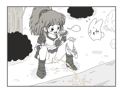 01 02 「制作風景05」の続きでLemon Juiceさんの雪平沙耶ちゃんを清書彩色させて頂きました^^b ラフ絵では「その後」の絵だったのですがもらす前→もらした後に変更しました。 Lemon Juiceさん有り難う御座いました!^^b |